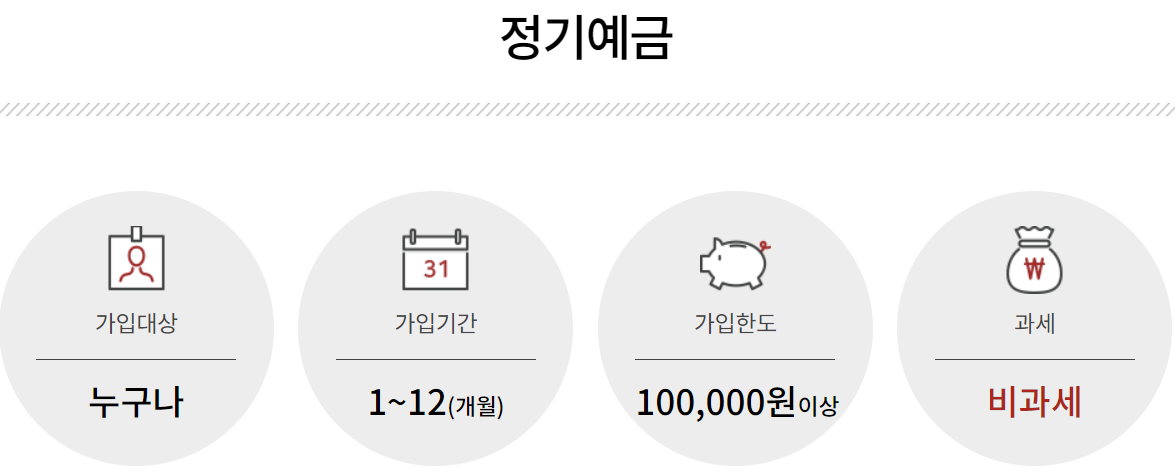 단리(매월이자지급) : 일반정기예금 매월이자지급식, 세전 3.6%