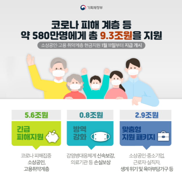 3차 재난지원금 1월 11일 부터 1인당 50만원 지금